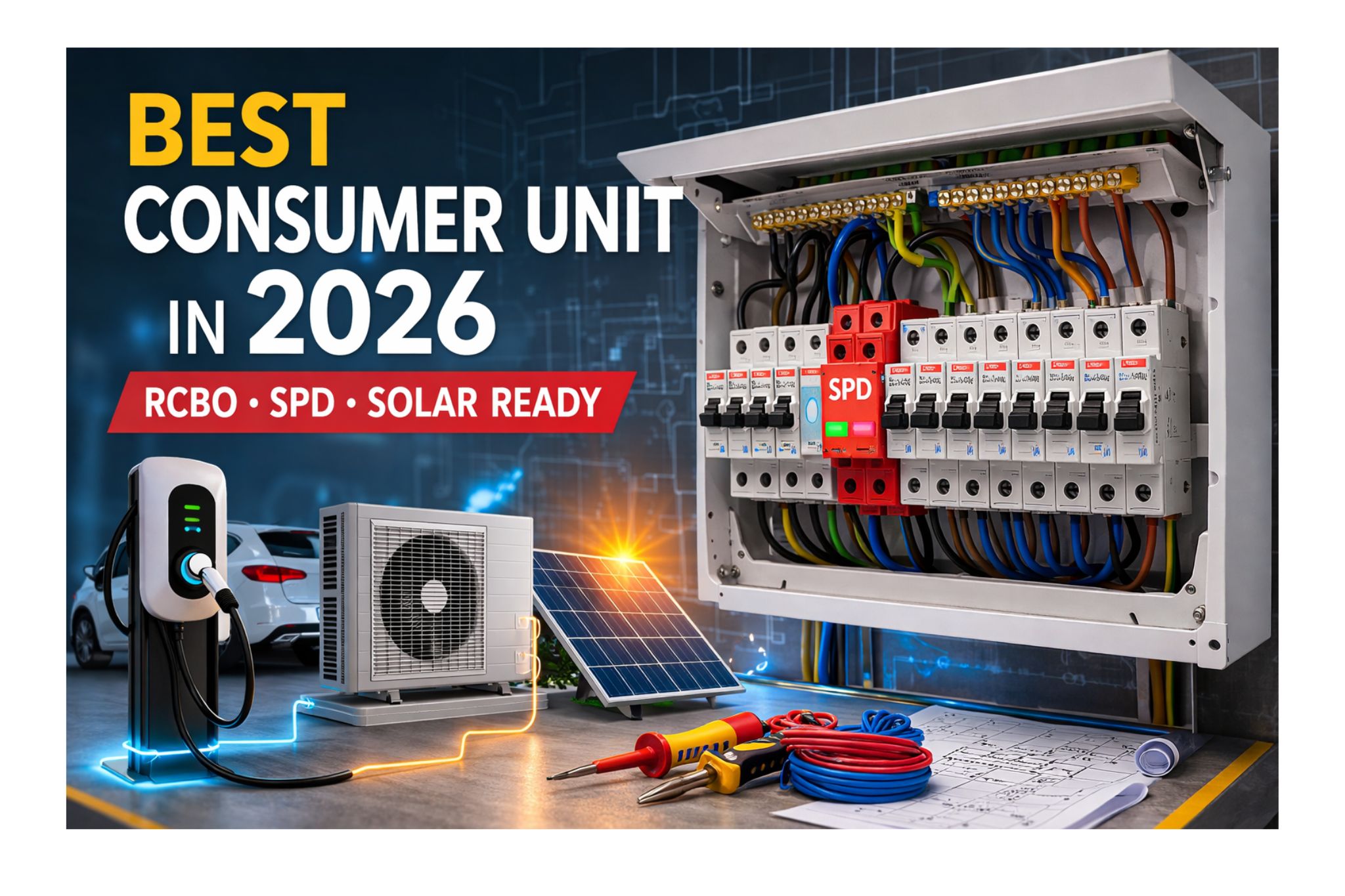 The best consumer unit in 2026 is typically a metal RCBO consumer unit with Type 2 SPD protection and enough space to support modern electrical systems such as EV chargers, heat pumps and solar PV installations.