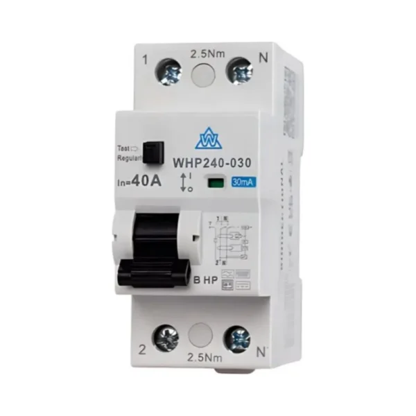 Whitecliffe develops protective devices tailored to modern electrification demands. The WHP Type B HP 40A RCD targets inverter-rich applications—such as heat pumps—where smooth DC and high-frequency residual currents are expected.