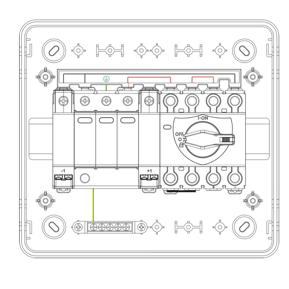 - Integrated 45A DC rotary isolator
