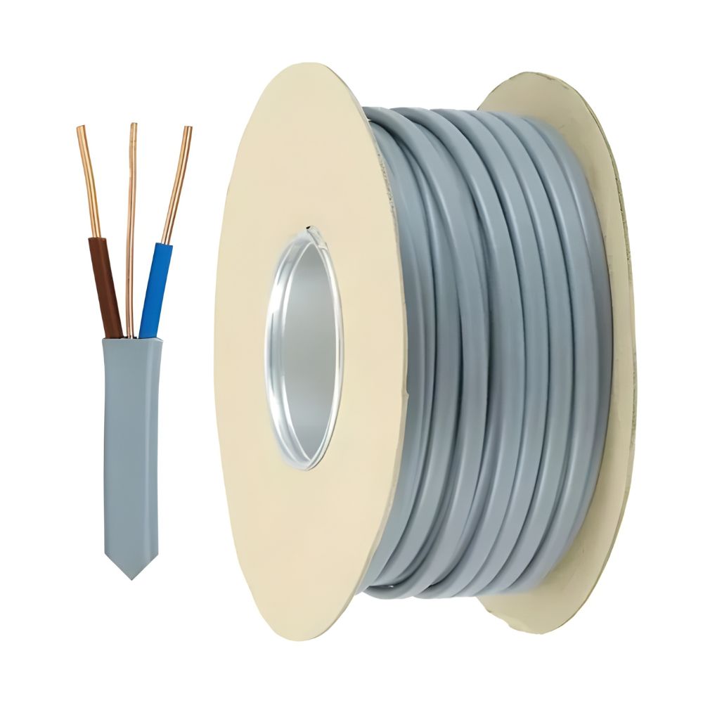 The 2.5mm twin and earth cable 50m drum (6242YH2.5/50) is a BS 6004:2012-compliant wiring cable designed for ring mains and socket outlets in domestic and commercial installations. Featuring solid copper conductors, it ensures efficient power transmission, while the durable grey PVC sheath provides long-lasting protection and flexibility.