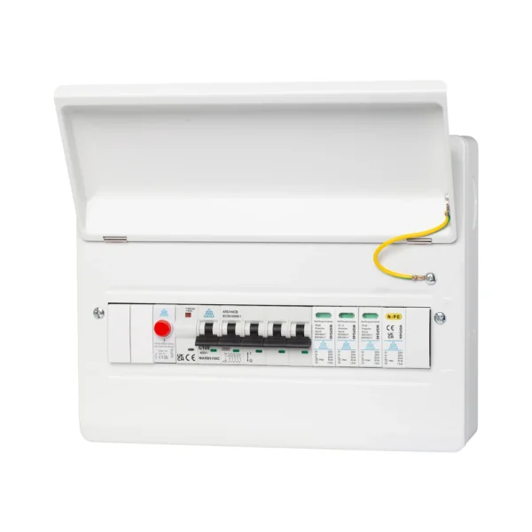 This model is equipped with a 5-pole 100A Curve C MCB and a Type 2 Surge Protection Device (SPD), delivering exceptional protection against overcurrents and voltage surges. It is specifically suited for EV chargers with integral DC leakage protection but lacking PME fault detection.