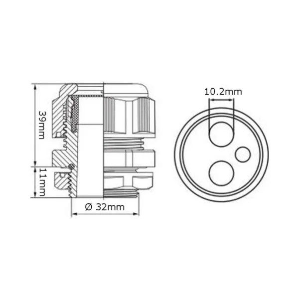 32mm Meter Tails Gland IP68 – UNI32-TG-25MM
