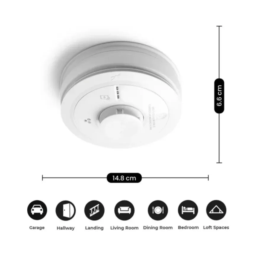 The alarm uses a Thermistor Heat Sensor and high-performance Optical Sensor that intelligently work together but also operate independently.