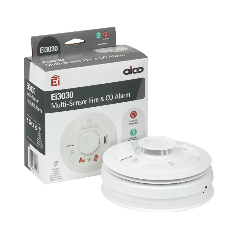 The Aico Ei3030 Multi-Sensor Fire and Carbon Monoxide Alarm is the latest addition to the advanced 3000 Series. It combines Optical, Heat, and CO Sensors for the ultimate fire and CO response while maintaining simplicity for easy installation.