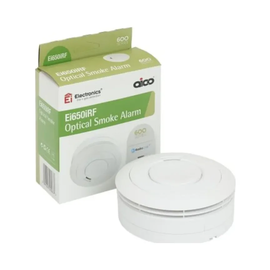 The Aico Ei650iRF RadioLINK+ Battery Optical Alarm is a battery-powered Optical Smoke Alarm. It is able to wirelessly interconnect with any other RadioLINK, RadioLINK+ and SmartLINK products.
