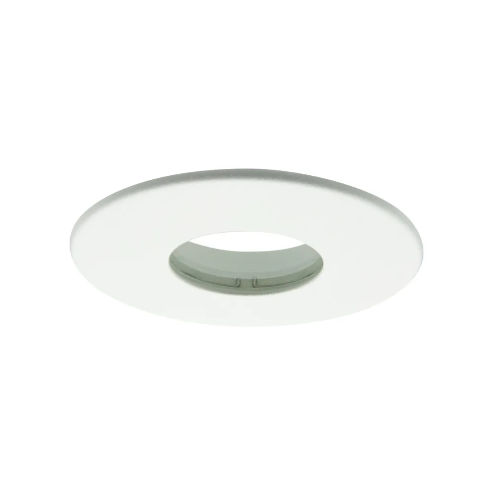 The ALL LED IP65 Fixed Polar White Bezel for iCan65 downlights combines a stylish polar white finish with fire-rated glass protection, perfect for secure, moisture-resistant lighting solutions.
