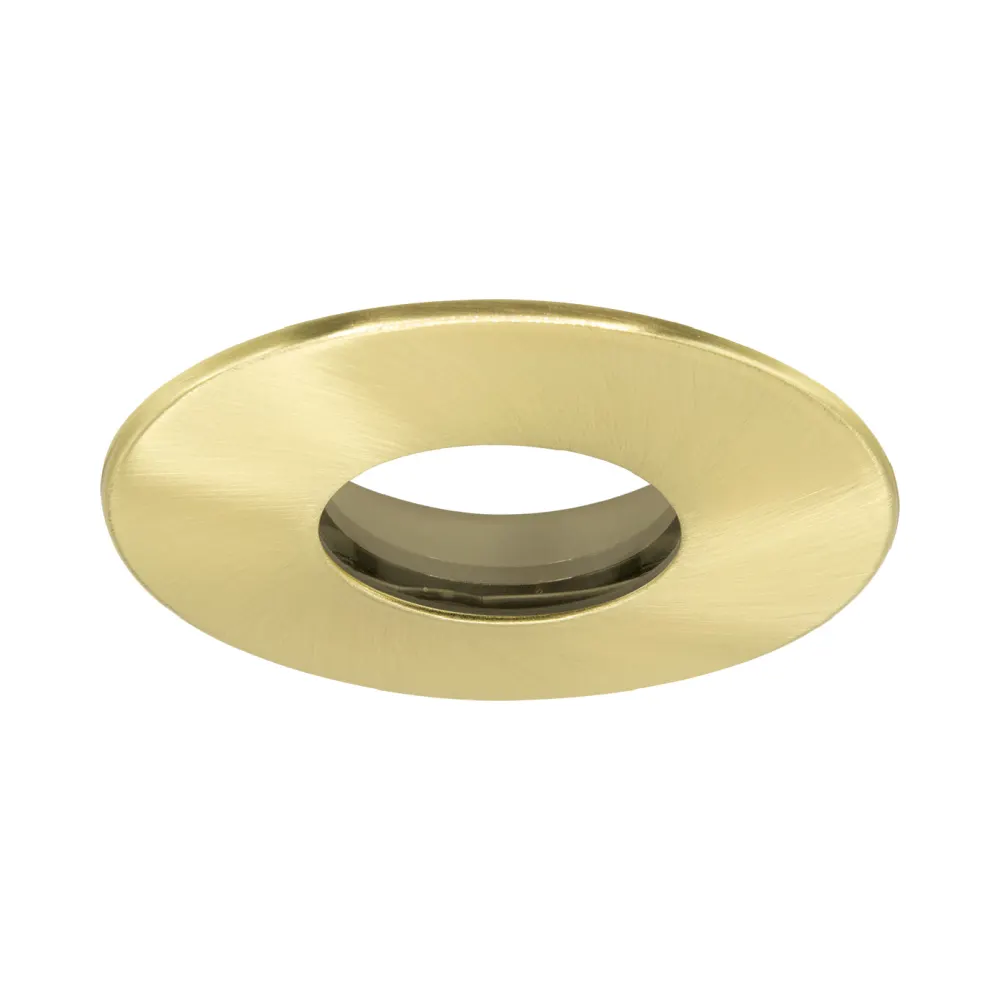 Designed for functionality as well as aesthetics, this bezel is IP65-rated, offering reliable protection against water and dust. This makes it suitable for use in damp environments, such as bathrooms, kitchens, or utility areas, where safety and durability are crucial. The brushed brass finish resists fingerprints and smudges, ensuring a clean and polished look over time.