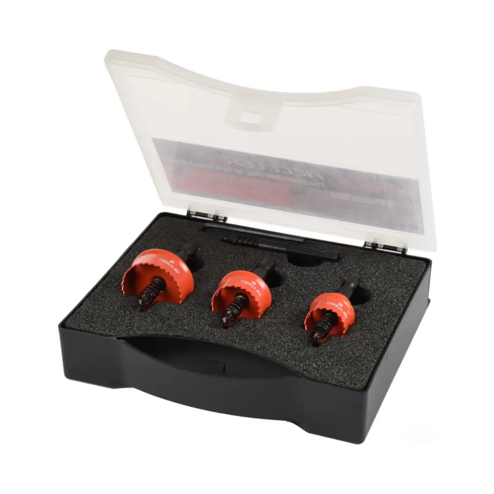 This professional-grade holesaw set is perfect for electricians, metalworkers, and installers. With three essential holesaw sizes, it allows for greater flexibility on the job. Additionally, its impact-ready design and fast cutting speed make it an essential kit for those working with sheet steel and enclosures.