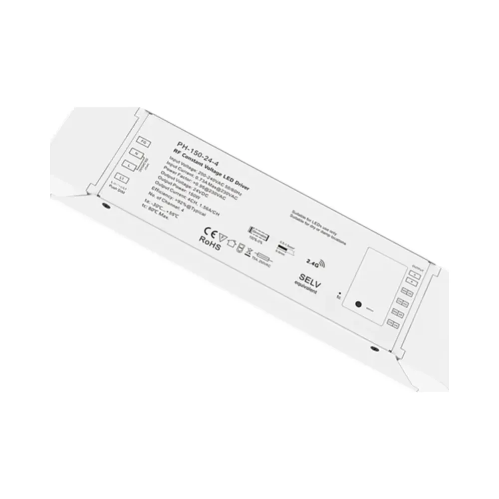 The Aurora AU-RGBCXWD2 150W RGBW / Tuneable White Driver with RF Control is an advanced all-in-one solution for LED strip installations. Combining a LED driver and wireless receiver, it offers enhanced flexibility and reduces wiring complexity. Designed to control RGBW or tuneable white LED strips, this driver is compatible with a range of Aurora LED strips and provides seamless functionality for both new and retrofit installations.