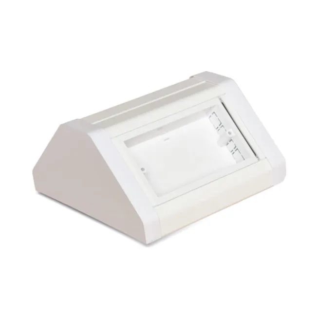 The Univolt BT-2GD WH bench box supports two faceplates on either side of trunking, providing shared access in classroom and lab installations.