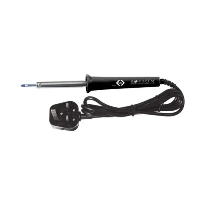 The C.K 495010 Soldering Iron, with a 40W power rating and UK plug, is a robust tool crafted for professional use. It features durable, high-quality construction and long-life tips designed for lead-free solder, perfect for demanding tasks. Tested to endure up to 10,000V, this soldering iron is safe for live work environments up to 1,000V.