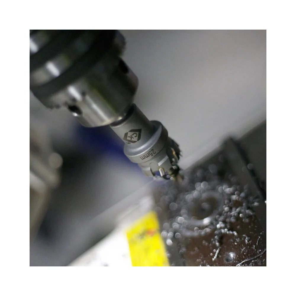 The C.K T3203 020 TCT Hole Saw from C.K Tools offers exceptional cutting performance with its Tungsten Carbide Tip (TCT). This hole saw is ideal for cutting through mild steel, stainless steel, cast iron, and copper, up to 12mm in thickness. Its 3-point variable cutting edge ensures maximum contact while minimising heat build-up, allowing for smoother cuts. The high-tension spring enables rapid slug ejection, ensuring efficient and uninterrupted operation.