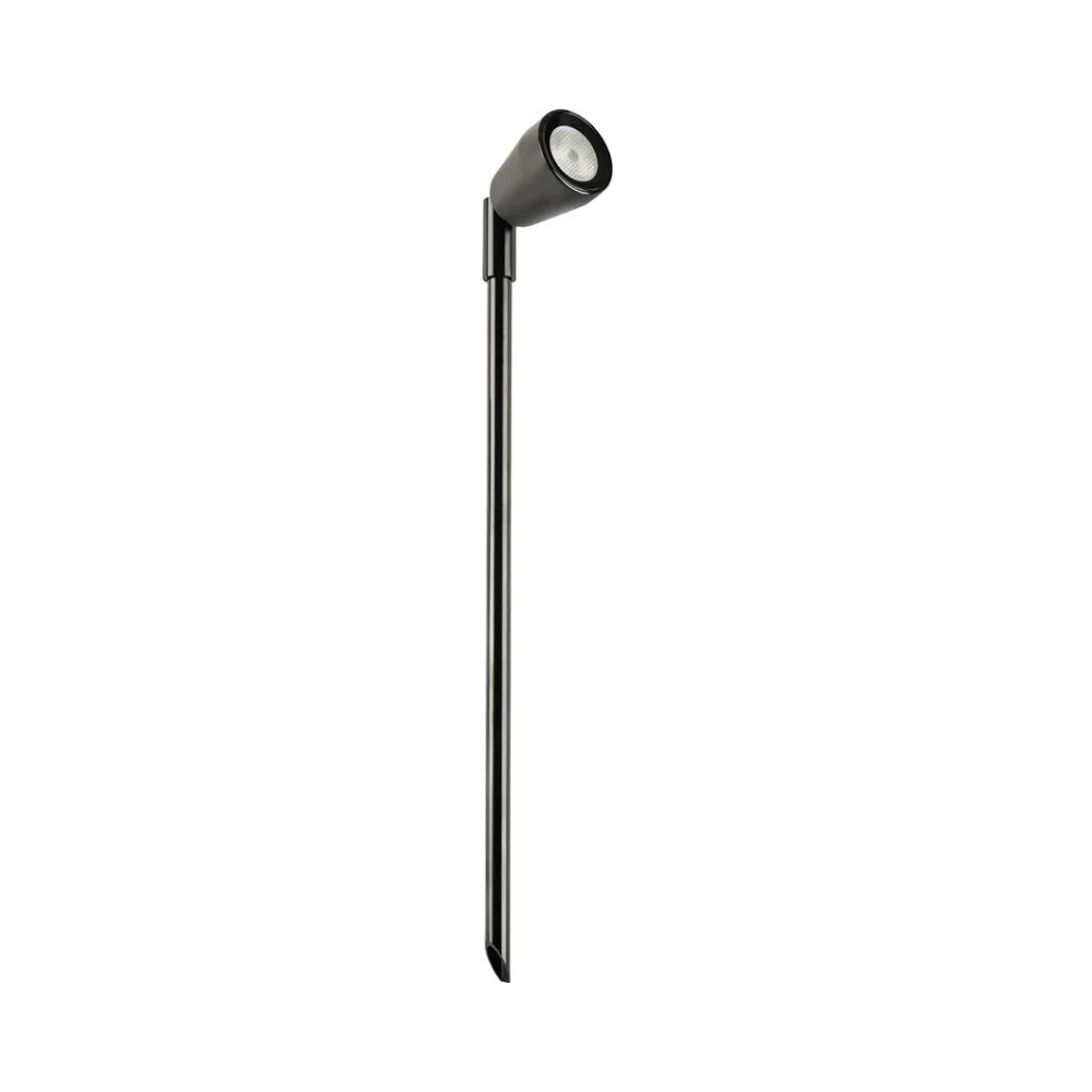 Its small, unobtrusive design features a long ground spike for stability and a 90° tiltable head for precise aiming. Constructed from anodised aluminium, the fitting is IP65-rated and coastal protected for reliable outdoor performance.
