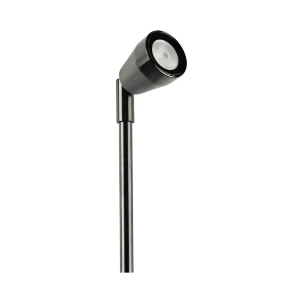 Its small, unobtrusive design features a long ground spike for stability and a 90° tiltable head for precise aiming. Constructed from anodised aluminium, the fitting is IP65-rated and coastal protected for reliable outdoor performance.