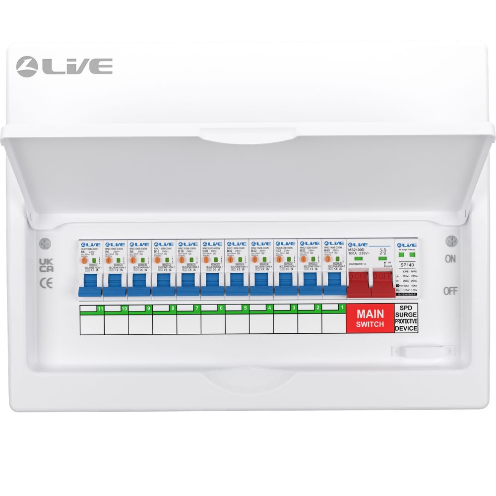 - RCBO Configuration: 3 x 6A, 2 x 16A, 1 x 20A, 4 x 32A and 1 x 40A