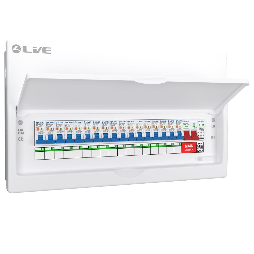- RCBO Configuration: 4 x 6A, 2 x 10A, 3 x 16A, 3 x 20A, 4 x 32A and 1 x 40A