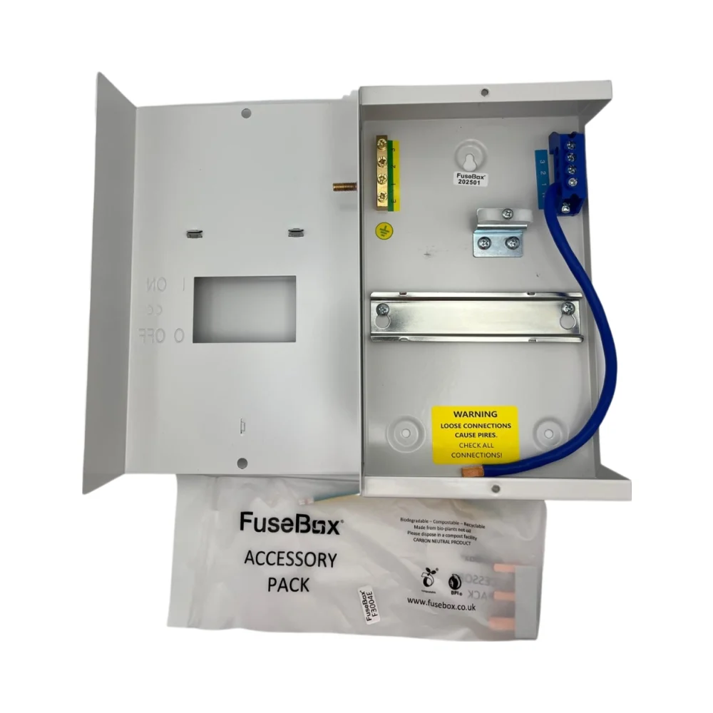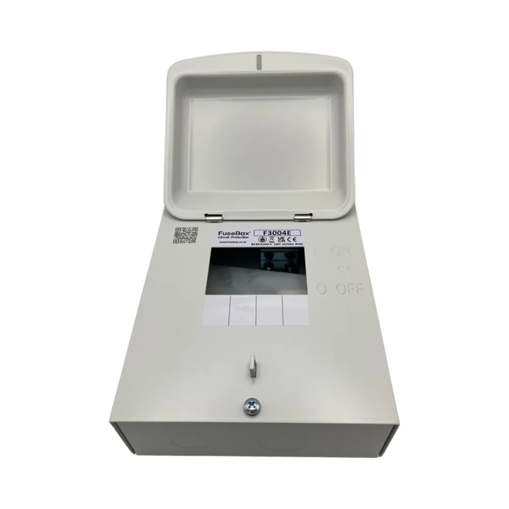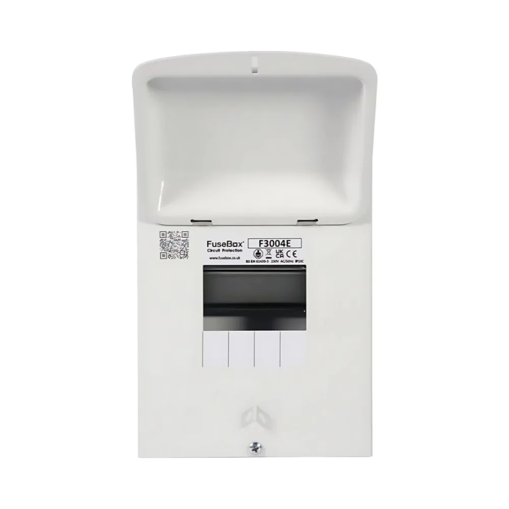 The FuseBox F3004E is a compact 4-module metal enclosure, ideal for housing a small number of protective devices such as RCBOs, MCBs, or surge protection devices. Designed with quality and durability in mind, it’s the perfect solution for sub-circuits, outbuildings, or any installation where a full-size consumer unit is unnecessary.