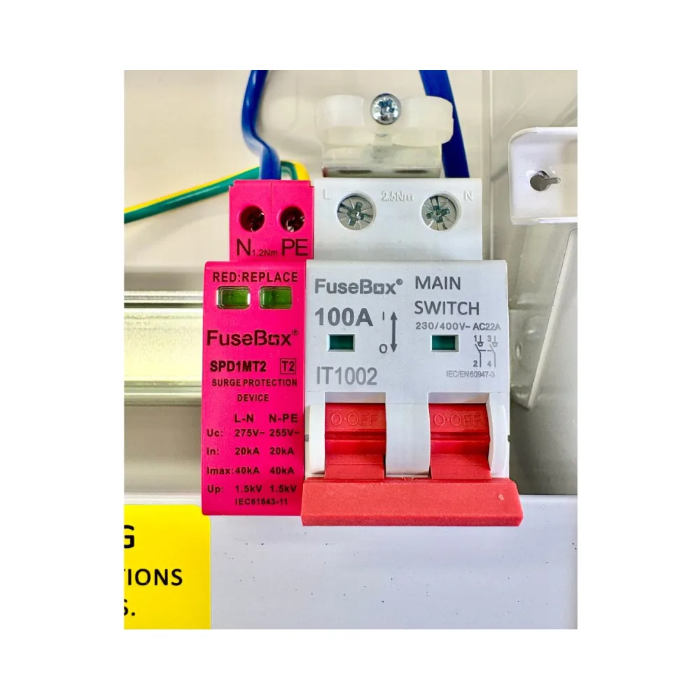 - 100A Main Switch & Pink Type 2 SPD (single module, no MCB required)