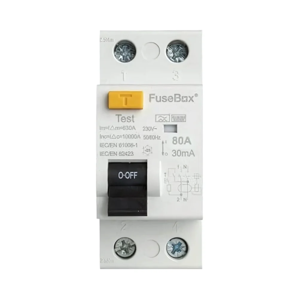 The Type F 80A RCD from Fusebox is engineered for modern electrical systems where sensitive appliances require a higher level of fault detection. It provides fast, reliable protection against pulsating DC and high-frequency AC faults—ideal for equipment with variable-speed drives.