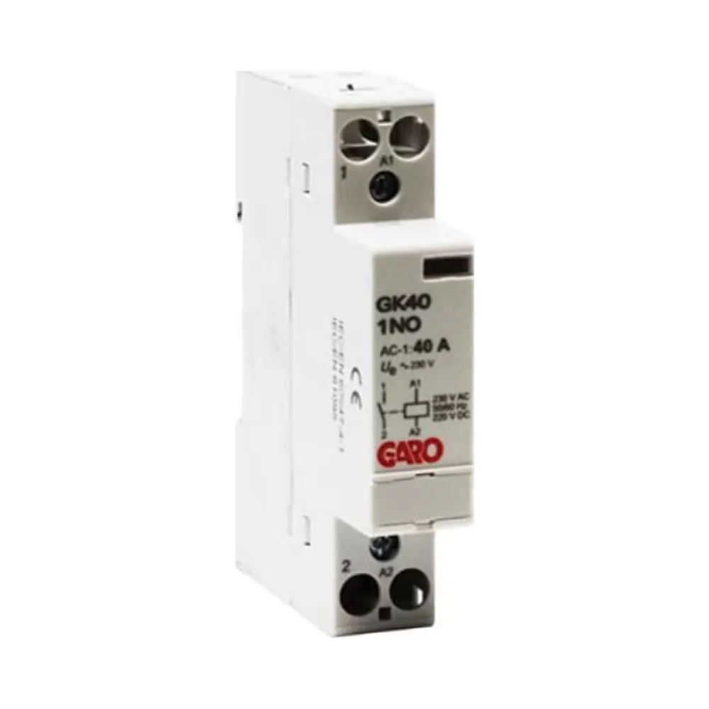 Garo 1 Pole 40A NO AC-DC Contactor delivers dependable switching for lighting, heating and small motor circuits. This DIN-rail contactor features a AC-DC coil, 1 pole architecture, 40A current rating, and a compact 1-module footprint for distribution boards and automation panels.