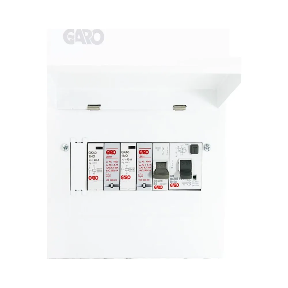 The Garo GM8-NPS is ideal for domestic shower and load distribution applications where non-priority operation is sufficient. Its integrated RCBO, compact metal enclosure, and full 18th Edition compliance make it a safe and practical solution for installers.