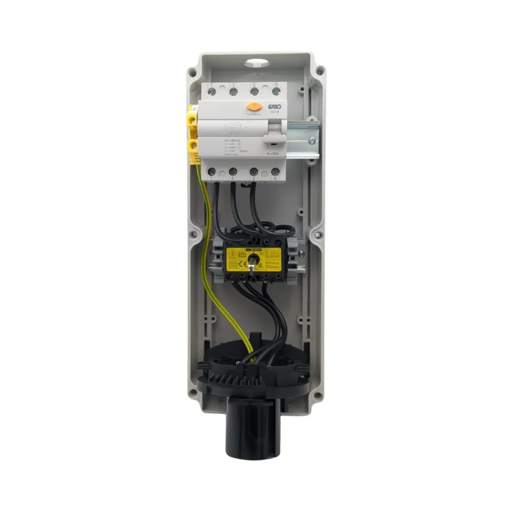 - For single phase setups, consider the 63A 2P+E socket with built-in Type A RCD.
