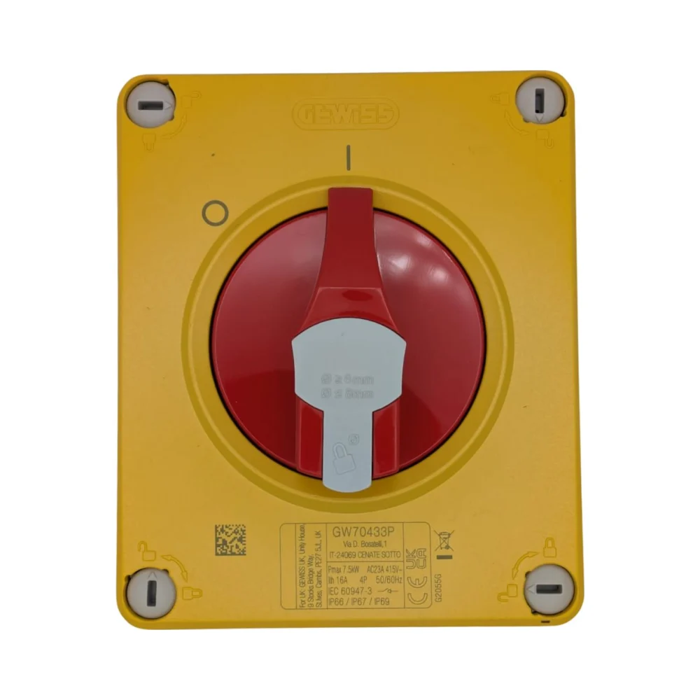 Gewiss GW70433P 16A 4-Pole IP66/67/69 Rotary Isolator Switch
