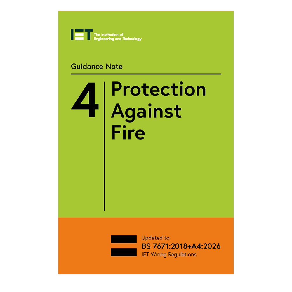 The guidance note 4 amendment 4 is the fully updated 10th Edition of the IET’s essential publication covering fire safety within electrical installations, aligned with BS 7671:2018+A4:2026.