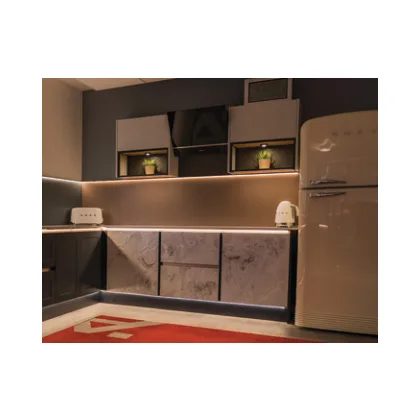 With a minimum bending radius of 30 mm and a high-density light line of 144 LEDs/m, it delivers smooth, continuous illumination for plinths, handle-free systems, cabinets and bespoke curved features.
