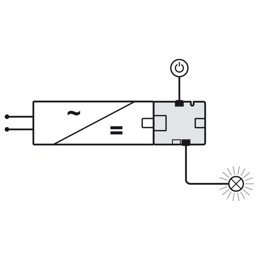 The integrated switching function allows control of two output ports via a single Loox switch, making it ideal for synchronised lighting setups in furniture and cabinetry.