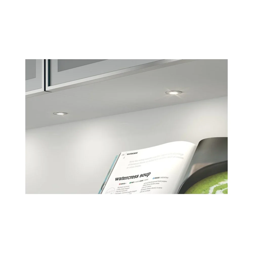 Enjoy the warm, ambient glow of the Hafele 83372085 Loox5 LED Spot Light – now in a sleek Ø35mm chrome finish. Designed for both style and functionality, this 12V spotlight blends seamlessly into bathrooms, cabinetry, and shelving. Its polished chrome housing delivers a modern, reflective look while offering splash-proof safety for use in wet zones.