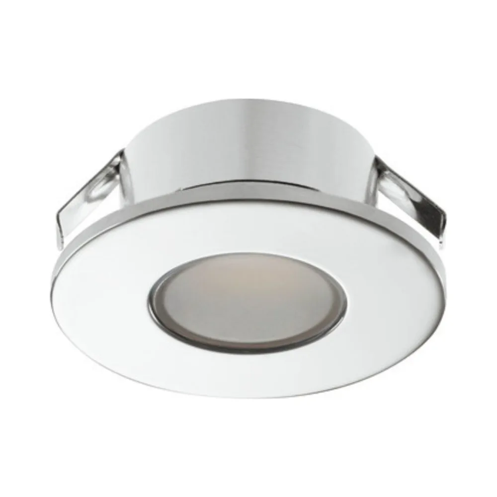 Its chrome plated polished aluminium housing and cool white 4000K output provide bright, neutral illumination, and when recess mounted it achieves an IP44 rating suitable for wet rooms and bathroom zone installations. Supplied with a 2000 mm Loox5 12V connector lead for simple plug-in installation.