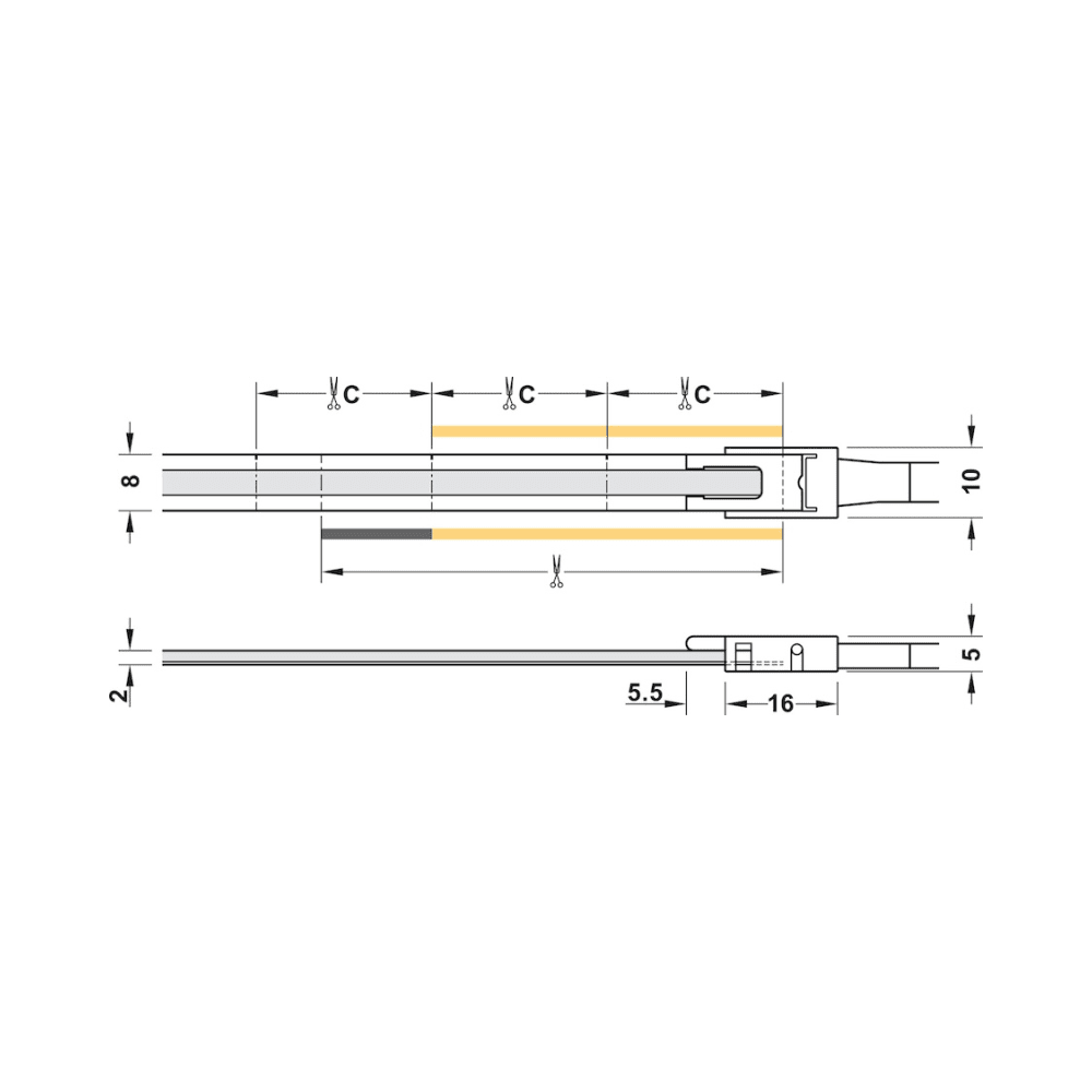 The Hafele 83376531 LED Strip 24V in multi-white (2700K – 5000K) offers dynamic, indirect lighting, making it perfect for illuminating furniture, enhancing glass edges, or creating modern interior lighting designs. This 5-metre COB LED strip uses a continuous phosphor coating, ensuring smooth and uninterrupted lighting without any visible LED points.