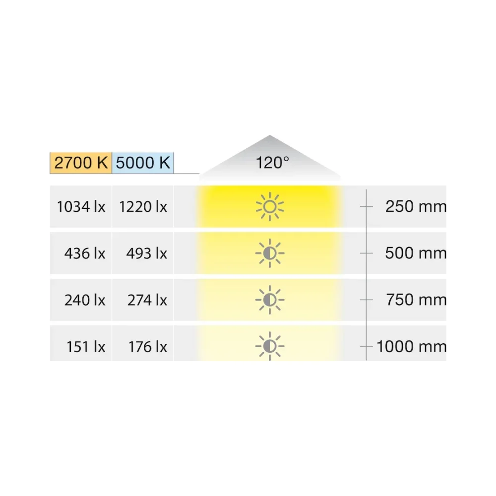 It delivers 890-895 lumens per meter and uses 9.6W/m, balancing brightness with energy efficiency. Furthermore, its IP20 rating makes it suitable for dry indoor areas.