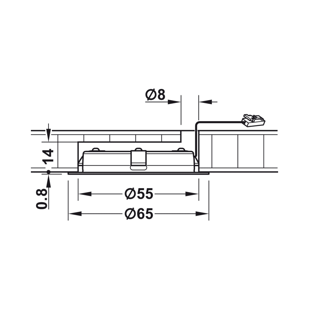 • Slim Profile: The light features a thin 0.8 mm rim, requiring a minimum hole depth of just 14 mm, making it suitable for tight spaces.