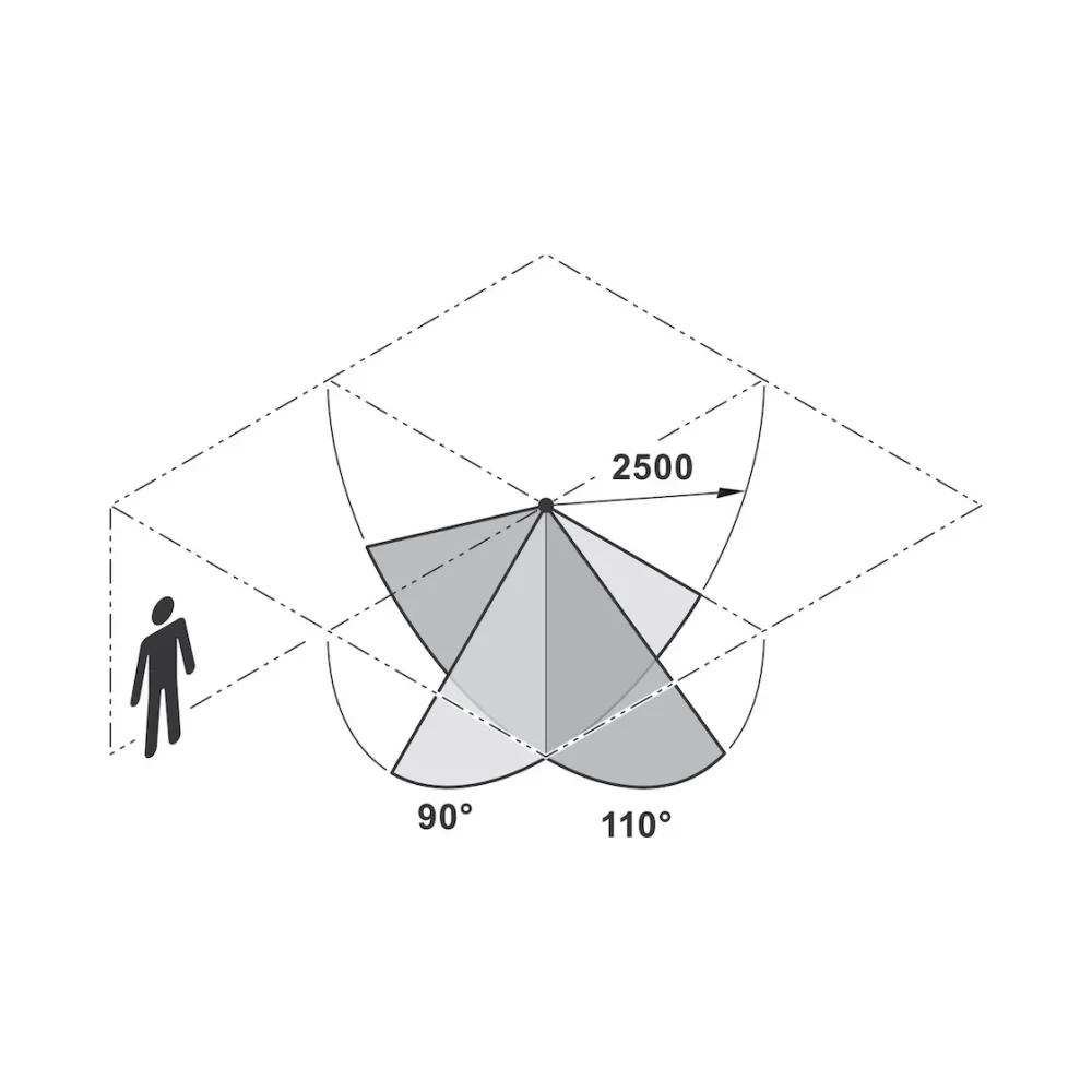 • Sensor range: Detects motion within 0–2,500 mm
