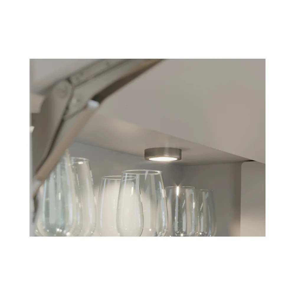 The homogenous light output impresses in a wide range of furniture and cabinets. Be it a recess mounting or mounting as a downlight, the 3W light always provides excellent colour rendering and illumination. For surface mounting, order bezel separately.