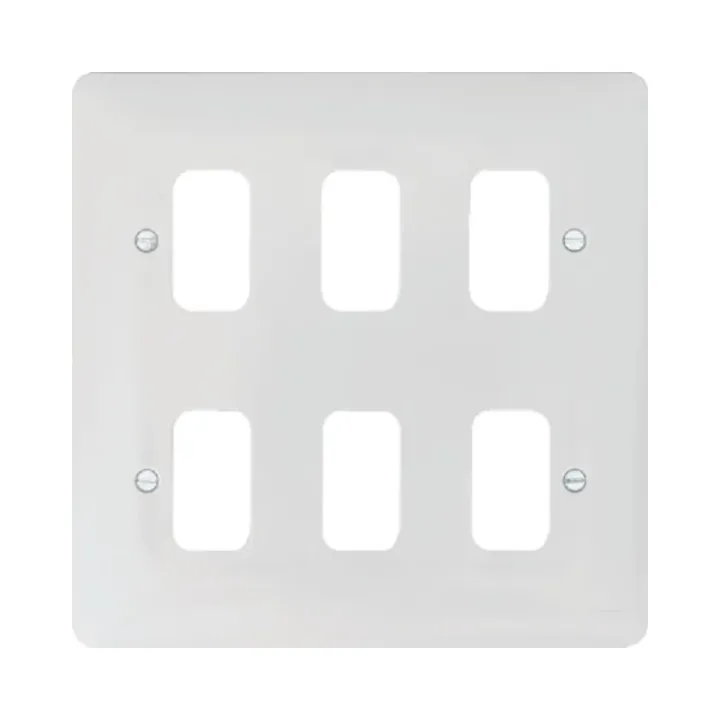 This 6 Gang White Grid Plate offers a practical and stylish solution for organising multiple switches and sockets, providing both reliability and a professional appearance for any electrical project.