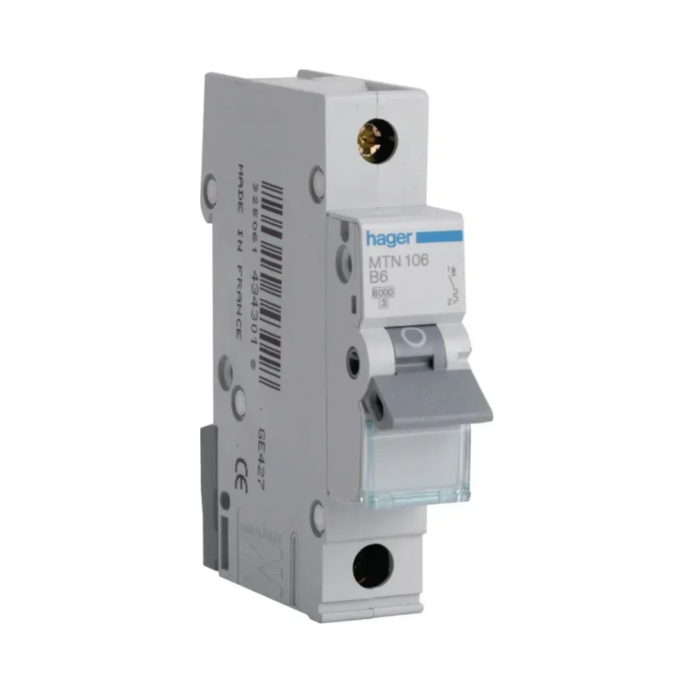 - 1 × Hager MTN120 MCB 6kA B-20 Type B MCB (20A, 1P, 6kA)