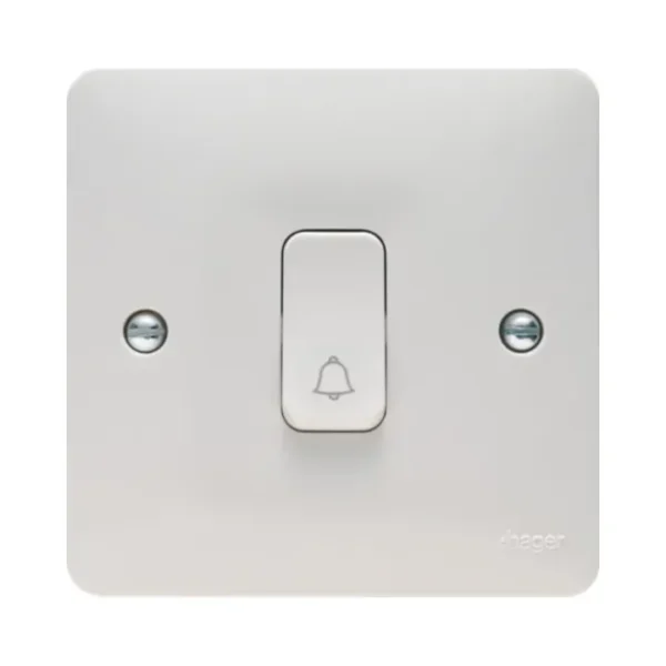 The Hager Sollysta WMPS12RB Push Switch with Bell Symbol is designed for easy control and reliable performance. It features a patented loop terminal for efficient wiring.