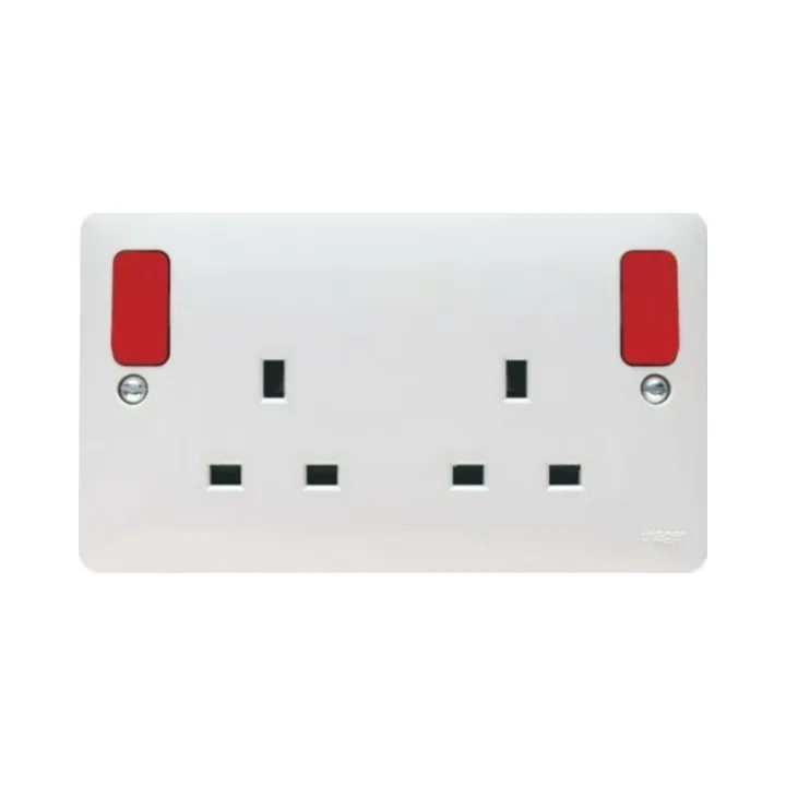 Hager Sollysta WMSS82OR 2 Gang 13A Switched Doubled Socket – Outboard Red Rockers