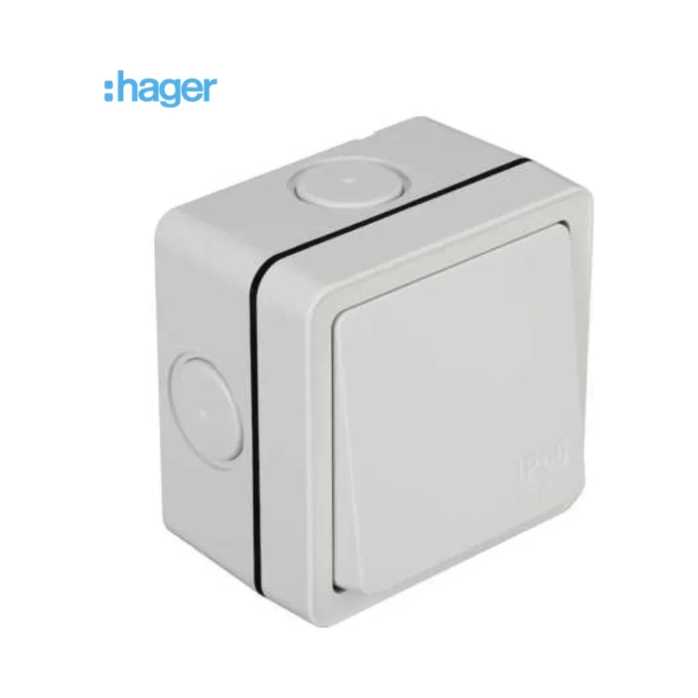 Hager Sollysta WXPPS12 IP66 1 Gang Outdoor Switch – Light Grey
