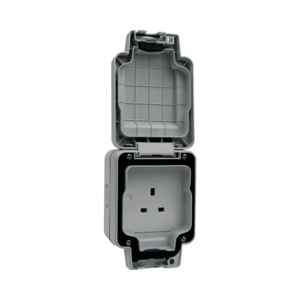 13A IP66 1 Gang Unswitched Outdoor Socket – Light Grey