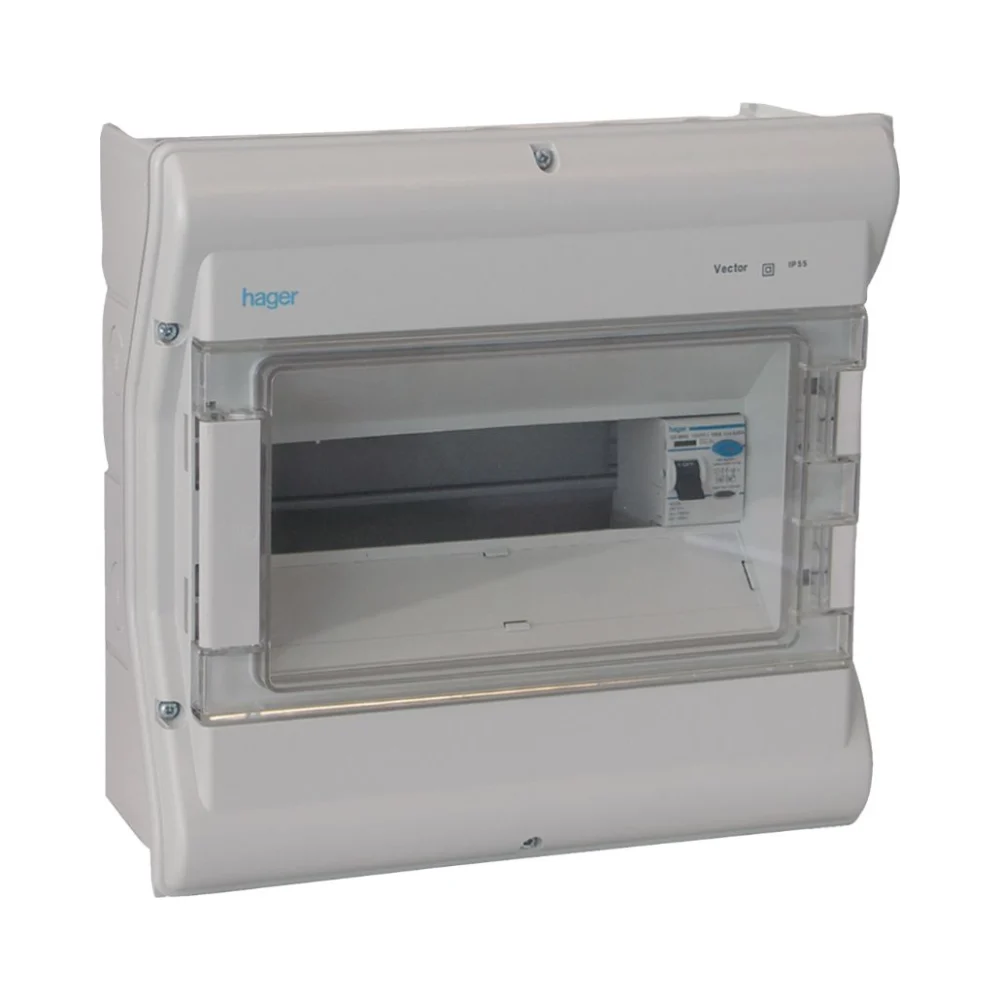 VW310G – Hager 10 Way Weatherproof Consumer Unit with Type A RCCB