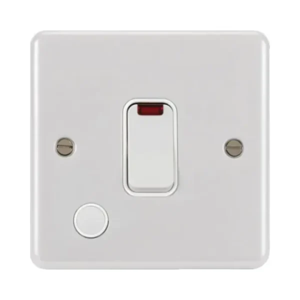 - 1 × Hager WPDP84FONW Metal Clad 20A Double Pole Switch with LED Indicator with Flex Outlet
