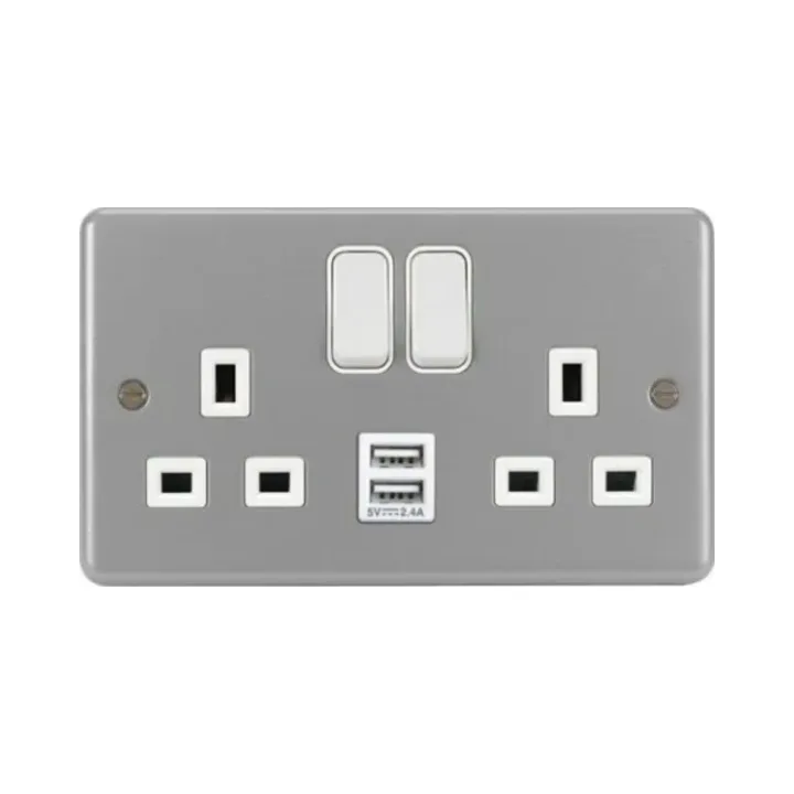 WPSS82-USB –  WPSS82-USB Metal Clad 13A 2 Gang Double Pole Switched Socket with Twin USB