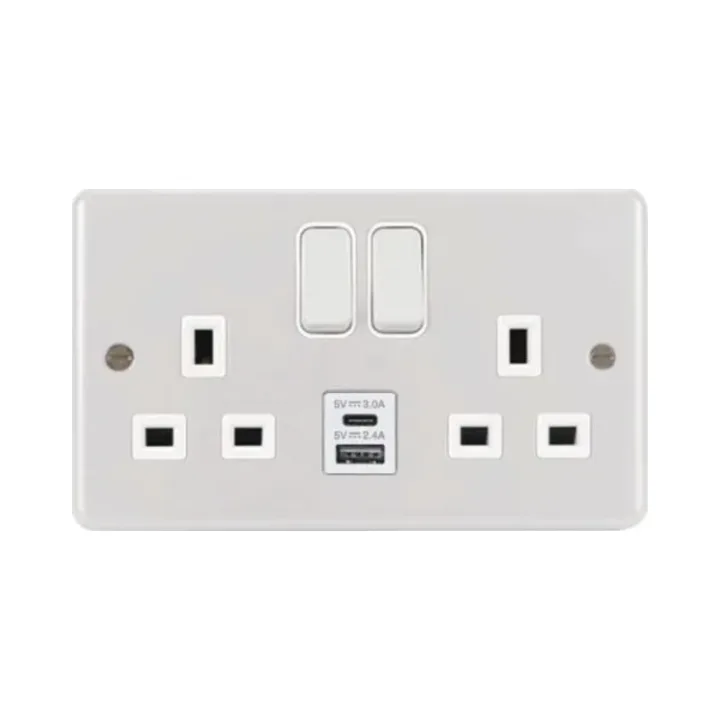WPSS82W-USBAC – WPSS82W-USBAC White Metal Clad 13A 2 Gang Double Pole Switched Socket with USB A+C