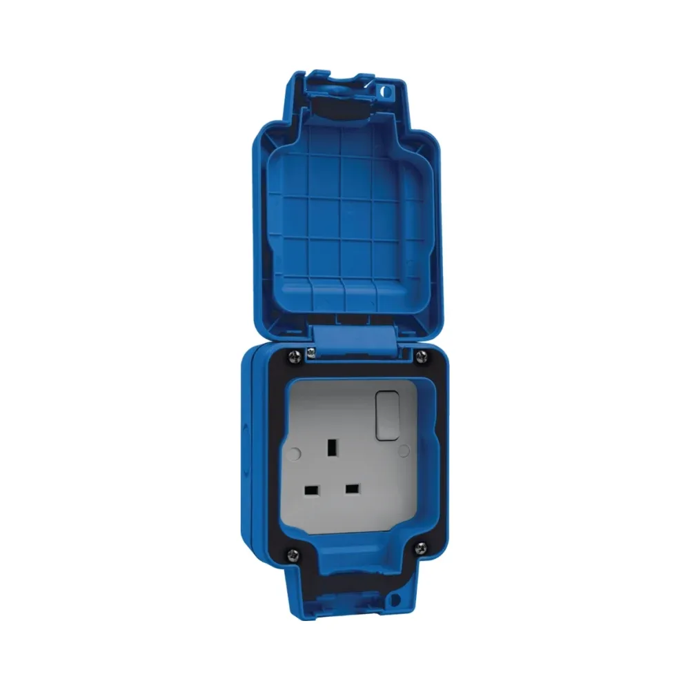 - Weatherproof single socket with double pole switch