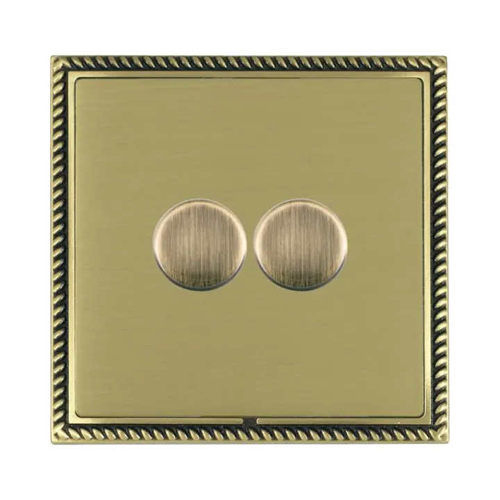 Hamilton LGX2XLEDITB100AB-SB Linea-Georgian CFX 2-Gang 100W LED Dimmer: Antique Brass Frame, Satin Brass Plate, 2-Way Rotary Switching.