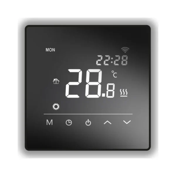- Multiple sensor settings: Choose room temperature with floor limit, floor-only control, or room temperature only for different heating setups.